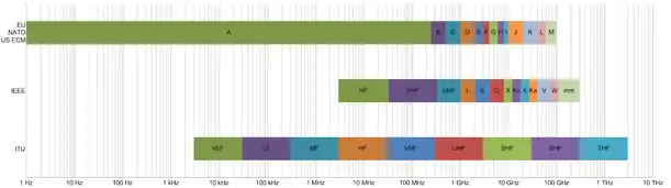 | HF | 0.003 to 0.03 GHz | High Frequency[11] |