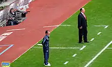 On 21 November 2012, following the dismissal of Roberto Di Matteo, Chelsea appointed Benítez as interim first-team manager until the end of the 2012–13 season.[55][56][57][58] He was unveiled as the new Chelsea manager at a press conference on 22 November 2012.[59][60][61] He appointed Boudewijn Zenden as his new assistant manager at Chelsea on the same day.[62]