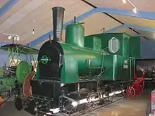 The railway was operated by two steam locomotives built by the Jung engine company of Germany, both of which have been preserved. Built in the 1890s in Germany, they worked briefly in Denmark before being imported to Iceland in 1913 for the harbour railway project. Locomotive Pioner is now a static exhibit at the Icelandic Folk Museum at Arbær, Árbær Museum, whilst locomotive Minør, after many years of storage in a Nissen hut under piles of rubbish, is now an open-air static exhibit in Reykjavík.[2] A scale model of part of this railway, showing one of the locomotives at work, is displayed in the Reykjavík Maritime Museum. Minør was the first to be withdrawn, whilst Pioner (which had received a replacement boiler in 1910 to extend its life) continued to operate until the railway closed in 1928.