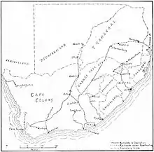 The first railway was from Cape Town to Wellington and was worked by a small locomotive in 1859. The first passenger carrying service was a small line of about 3.2 kilometres (2 mi) built by the Natal Railway Company, linking the town of Durban with Harbour Point, opened on 26 June 1860.[2] Cape Town had already started building a 72-kilometre (45 mi) line, track gauge 1,435 mm (4 ft 8 1⁄2 in), linking Cape Town to Wellington in 1859 but was hampered by delays and could only begin passenger service to the first section of the line to the Eerste River on 13 February 1862. However Cape railway construction began a massive expansion, after the formation in 1872 of the Cape Government Railways.[3]