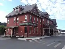 The town of St. Johnsbury was transformed in the mid-19th century into a bustling railroad service center by the arrival of both north-south and east-west railroad lines. The town's Union Station, a substantial brick French Chateau-style building, was built to accommodate the traffic of both the Connecticut and Passumpsic Railroad (which carried main-line passenger traffic between Boston and Montreal) and the St. Johnsbury and Lake Champlain Railroad, which served north Vermont to the west. Fires in 1892 and 1896 cleared commercial buildings northwest of the depot, at what is now the corner of Railroad Street and Eastern Avenue. New brick commercial buildings were built to replace those lost in the fires.[3]
