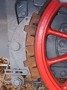 - The chain brake, in which a chain was connected continuously along the bottom of the train. When pulled tight, it activated a friction clutch that used the rotation of the wheels to tighten a brake system at that point; this system has severe limitations in length of train capable of being handled (as braking strength was considerably weaker after the third car), and of achieving good adjustment (give the slack that pin couplers required, which a fixed-length chain could not account for). In the United States, the chain brake was independently developed and patented by Lucious Stebbins of Hartford, Connecticut in 1848 and by William Loughridge of Weverton, Maryland in 1855.[8] The British version was known as the Clark and Webb Brake, after John Clark, who developed it throughout the 1840s, and Francis William Webb, who perfected it in 1875.[9] The chain brake remained in use until the 1870s in America[8] and 1890s in the UK.[9]