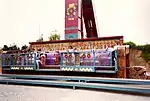 | 11 | Trailer mounted with rainbow virtical stripes on arm, gold/blue V-stripes on support. Has a custom rectangle sign on top.