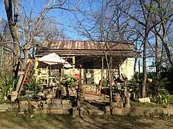 Rainey Street is positioned near Lady Bird Lake and Interstate 35 in the southeast corner of downtown. Though 21 buildings are specifically identified as a part of the historic district, the stretch of Rainey between River and Driskill includes 31 buildings built before 1934,[2] giving the neighborhood a historic character relative to other areas of the city. The district includes 120 acres (0.49 km2) from 70 to 97 Rainey Street. It was added to the National Register of Historic Places in 1985.[3] Since the early 2010s, the formerly sleepy residential street has turned into a popular nightlife district. Much of the historic homes have been renovated into bars and restaurants, many of which feature large porches and outdoor yards for patrons.[4]