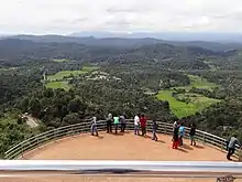 A spectacle of layers of greenery, chain of high and low-rise-mountains attired with mist, the Raja Garden was a one-time-favorite of the kings of Kodagu who used to watch the setting sun, and spend time with their queens here.[1] It is shaped like a small square in brick and mortar, with four pillars bridged by arches, enhanced by beautiful surroundings. This spot was a favorite place of recreation for the Rajas and hence was permanently associated with them. It is built on a high level ground with a commanding view of the cliffs and valleys to the west. Early in the morning as the sun is just rising in the east, the mist shrouded valley below offers a rare sight. There is also a Toy Train for children.