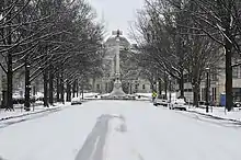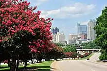 ![]() Clockwise from top left: NC State bell tower, Confederate Monument at the North Carolina State Capitol (now removed), houses in Boylan Heights, houses in Historic Oakwood, statue of Sir Walter Raleigh, skyline of the downtown, Fayetteville Street, and the warehouse district | |
