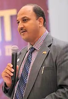 Ram Prasad Khanal (Nepali: रामप्रसाद खनाल) is a Nepalese musician, distinguished class singer, and folk-music activist.[1][2] He is working for the growth and development of Nepali folk music for decades. He is an author, journalist, artist, actor, composer, and radio and TV program producer, director and presenter. He serves as President[3] of International Artists Forum.[4] He has mainly been known for his Nepali folk and duet songs and his activism in the field of folk music.[5]