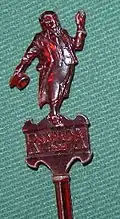 From its start in the 1950s until around 1976, Ramada's logo featured a friendly bald innkeeper, dubbed "Uncle Ben". He sported an apron (later a suit and tie) and held a top hat in one hand; in the other hand was a red trumpeted banner that read "Ramada Inn Roadside Hotels". From 1976 to 1982, the chain's logo was a simple rounded rectangle that read "Ramada Inn" in the original design's gothic Western-style lettering. of the original design. From 1982 to 2004, Ramada changed to a revised, rounded rectangular design with more "modern" lettering.