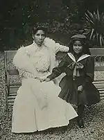 During the first years of her exile in Algeria, Ranavalona soon discovered the excitement of the socialite lifestyle among the elite of Algiers. She was regularly invited to parties, outings and cultural events and often hosted events of her own.[32] However, homesickness was ever-present and the impossibility of visiting Madagascar contributed to melancholy and boredom. She would frequently take long walks alone in the countryside, along the beach, or through the town to clear her mind and lift her spirits.[33] The queen was eager to see mainland France and especially Paris and repeatedly submitted formal requests for permission to travel. These were routinely denied until May 1901 when Ranavalona received the first of many authorizations to visit France. That very month, the queen moved into a small apartment in the 16th arrondissement of Paris near the Avenue Champs-Élysées and what is now the Place Charles de Gaulle, from which she visited the major sights of the city and was invited to numerous receptions, balls, shows and other events. She was widely received by high society with courtesy and admiration and was offered many gifts including a costly gown. During this first trip, Ranavalona visited the Palace of Versailles, was formally received at the Paris City Hall, and spent three weeks on vacation in Bordeaux. Finally, Ranavalona visited the beaches of Arcachon before exhausting her budget and boarding an Algeria-bound ship at Marseilles in early August.[34] The details of her visit attracted much attention from the Parisian press,[31] which expressed sympathy for the queen's fate and recrimination toward the French government for failing to provide a larger pension or accord her the consideration she deserved as a recipient of the Legion of Honor.[34]