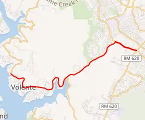 | Travis | Volente | 0.000 | 0.000 | Lime Creek Road | Western terminus |