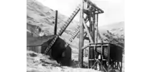 In 1874, a seam of low grade bituminous coal was found in upper Malpaso Canyon, southeast of Pt Lobos.[16] On September 6, 1888, shortly after the patent for Rancho San Jose y Sur Chiquito was approved, all those excepting Gregg and the squatters banded together to form the Carmelo Land and Coal Company. In exchange for shares in the company, they sold their interest in the land for $1. For the first time in almost half a century, most of Rancho San Jose y Sur Chiquito was reunited under one owner.[8] The company dug an almost 1,000 feet (300 m) long tunnel into the mountain. The coal was found in three veins from 2 to 9 feet (0.61 to 2.74 m) in thickness. The coal was transported on a tramway using ore carts to Coal Chute Point, opposite the Chinese settlement at Whaler's Cove. The deep water allowed the workers to use the chute to deliver the coal directly to coastal steamers.[6][7]