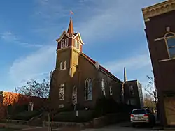 The Randolph Street Church of Christ is a historic church in Huntsville, Alabama. It was built in 1887 in a Gothic Revival style similar to rural churches, but built of brick. Rather than a central entrance, the tower contains doors under pointed toplights on the sides, and a double lancet window joined under a pointed arch. Another set of lancets flanks the tower. On the corners of the façade and along the side walls are pilasters, dividing the sides into bays with one set of lancets each. The eaves of the gable are corbelled. Above the eaves, the tower is faced with tin, and each side has a pair of arched vents below a small gable. A modern spire and weather vane top the tower. The church sits half a block from Courthouse Square, adjacent to the rear of the Milligan Block.[2] The church was listed on the National Register of Historic Places in 1980.[1]