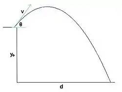 If y0 is taken to be zero, meaning that the object is being launched on flat ground, the range of the projectile will simplify to: