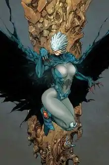 Raven is a fictional superhero appearing in American comic books published by DC Comics. The character first appeared in a special insert in DC Comics Presents #26 (October 1980), and was created by writer Marv Wolfman and artist George Pérez.[1] A Cambion, daughter of a demon father (Trigon) and human mother (Arella), Raven is a powerful empath who can sense emotions and control her "soul-self", which can fight physically, as well as act as Raven's eyes and ears away from her physical body; more recently, she's been shown as being adept with various types of magic and sorcery. She is a prominent member of the superhero team Teen Titans. The character also goes by the alias Rachel Roth as a false civilian name.