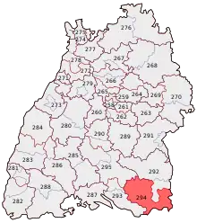 Ravensburg is an electoral constituency (German: Wahlkreis) represented in the Bundestag. It elects one member via first-past-the-post voting. Under the current constituency numbering system, it is designated as constituency 294. It is located in southeastern Baden-Württemberg, comprising most of the district of Ravensburg.[1]