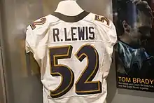 Lewis pleaded guilty to obstruction of justice in connection with the stabbing deaths of two men in 2000. The following season, he was named NFL Defensive Player of the Year and led the Ravens' record-setting defense to victory in Super Bowl XXXV. Lewis also became the second linebacker to win the Super Bowl Most Valuable Player Award, and the first to win the award on the winning Super Bowl team.[1] Lewis won his second Defensive Player of the Year award in 2003, becoming the sixth player to win the award multiple times.[2] After a triceps tear that sidelined him for most of the 2012–13 season, Lewis returned for the Ravens' playoff run and earned his second Super Bowl victory in his final NFL game. On February 3, 2018, the fifth anniversary of his final game, Lewis was selected to the Pro Football Hall of Fame in his first year of eligibility.[3]