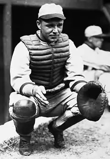 Raymond William Schalk (August 12, 1892 – May 19, 1970) was an American professional baseball player, coach, manager and scout.[1] He played as a catcher in Major League Baseball for the Chicago White Sox for the majority of his career.[1][2] Known for his fine handling of pitchers and outstanding defensive ability, Schalk was considered the greatest defensive catcher of his era.[3][4] He revolutionized the way the catching position was played by using his speed and agility to expand the previously accepted defensive capabilities for his position.[5] Schalk was elected to the Baseball Hall of Fame in 1955.[6]