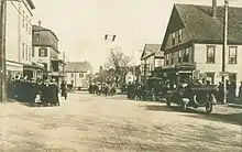 The Concord and Portsmouth Railroad line from Concord to Portsmouth reached Raymond in 1861. In 1862 the alignment was altered, rerouting trains to Manchester rather than Concord. However, freight and passenger trains still originated in Concord and traveled south on the New Hampshire Division Main Line before entering the Portsmouth Branch at Manchester. The line later became the Portsmouth Branch of the Boston and Maine Railroad. Passenger service ended in 1954, with mixed train service continuing until 1960. Local freight service continued regularly until 1972 and as-needed afterwards, usually once or twice a week. A large gravel pit located near Lake Onway was a busy railroad customer until closing in 1971, as was the Regis Tannery downtown until a fire the same year. There were no regular rail customers in Raymond from 1971 until 1976, when Rehrig Pacific opened a plastics injection plant near Route 102. The last train served Raymond on July 31, 1980, and the tracks through town were abandoned in 1982 and removed between 1983 and 1985. [6] The line is now a rail trail, and the restored depot survives today as home to the Raymond Historical Society.