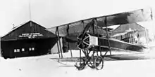 Bolling reported to the Chief Signal Officer from Paris on August 15 and recommended that the United States send materials, engines, and parts for assembly of airplanes in Europe.[26] To accelerate the number of American pilots, the report recommended that the best cadets then in ground schools be shipped to France to complete their primary flight training under French instructors. The report further recommended an air force of "fighting airplanes and bombers" well beyond the numbers of airplanes providing auxiliary support of ground forces by observation.[28] In particular Bolling and his Army colleagues, Captains Edgar S. Gorrell and Virginius E. Clark, were impressed by the concept of long-range strategic bombing, influenced by the Italian use of Caproni bombers against Austrian targets. It was one of a number of aircraft the commission recommended for manufacture by American industry, including the Bristol and SPAD VII fighters,[29] but of its recommendations, only the deHavilland DH-4 was suitable for American production methods or engines and thus built in quantity before the war ended.[24] Bolling prepared the preliminary aeronautical contract with the French, calling for delivery of 5,000 airplanes by July 1, 1918, which was signed on August 30, 1917, by the French air minister and General Pershing, now in command of the American Expeditionary Force.