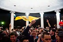 The public in India celebrated the death of bin Laden across its various cities, by thanking and congratulating the United States.[62][63][64][65][66][67] In the Indian capital New Delhi, crowds gathered in the streets to celebrate the occasion, thanking U.S. President Barack Obama.[67] "Festival like celebrations" were seen in Ahmedabad, where people lit firecrackers and burned photographs of bin Laden while shouting slogans.[68][69][70] People in the coastal town of Udupi rejoiced on Monday by exchanging greetings and distributing sweets. Celebratory crowds in Udupi, headed by the chief of Shiroor Matha, shouted slogans and burned an effigy of bin Laden.[71][72] In Bangalore, over 100 members of the Sri Ram Sene converged in Freedom Park in a jubilant mood to celebrate with firecrackers and the passing out of sweets to passers-by.[73] The news of bin Laden's death was watched by 42.6 million Indians.[74]