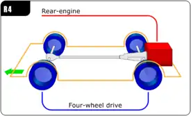 In automotive design, an R4, or Rear-engine, Four-wheel-drive layout places the internal combustion engine at the rear of the vehicle, and drives all four roadwheels.