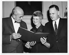 ![]() Rebecca Lancefield (center) receiving the T. Duckett Jones Award in 1960. | |