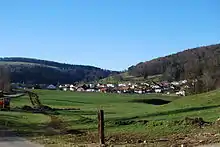 Rebeuvelier is a former municipality in the district of Delémont in the canton of Jura in Switzerland. On 1 January 2019 the former municipalities of Rebeuvelier and Vellerat merged into the municipality of Courrendlin.