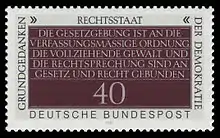 Rechtsstaat (lit. "State of Rights"; "Rights' State") is a doctrine in continental European legal thinking, originating in German jurisprudence. It can be translated into English as "rule of law", alternatively "legal state", "state of law", "state of justice", or "state based on justice and integrity".[1]