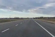 The Red Coat Trail is primarily asphalt concrete between SK Hwy 6 and SK Hwy 47 where traffic volume reaches about 1,450 vpd east of Weyburn, and over 3,500 vpd within the city on this class 2 highway.[16][17] There is a short stretch of granular pavement before SK Hwy 9 where the traffic volume falls to about 1,700 vpd, rising to about 2,400 vpd near Carlyle.[16][17]