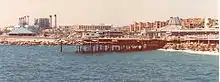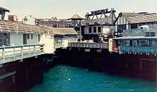 The ocean side of Pacific Coast Highway (PCH) has restaurants and boating activities while inland of PCH is largely residential. Redondo Breakwall is a well-known surf spot in the South Bay. This power plant sports Whaling Wall number 31, a 586 ft (179 m) × 95 ft (29 m) whale mural by artist Robert Wyland titled "Gray Whale Migration".