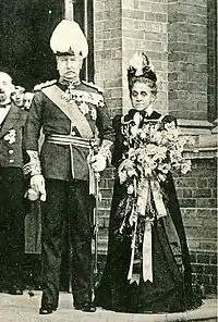 He had married Audrey, the daughter of the 4th Marquess Townshend, in 1882 and in the same year was sent to the Sudan in command of an infantry brigade and fought at the battles of El Teb and Tamai, and the expedition to relieve General Gordon in 1885. He was promoted to major-general. He was sent to Ireland in 1886, to head an inquiry into moonlighting by police personnel. He returned to the Army as Quartermaster-General to the Forces the following year and in 1890 promoted to Adjutant-General to the Forces, becoming a Lieutenant general on 1 April 1891.[7] He was appointed Honorary Colonel of the 1st (Exeter and South Devon) Volunteer Battalion, Devonshire Regiment, on 4 May 1892.[8] Although expected to be made Commander-in-Chief of the British Army by Lord Rosebery's government on the retirement of the Duke of Cambridge in 1895, this did not happen because the government was replaced and Lord Wolseley was appointed Commander-in-Chief of the Army instead. On 24 June 1896 Buller was promoted to full General.[9]