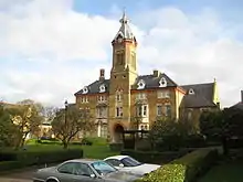 After the war the governors decided not to return to the school at Watford, which the government in any case wished to retain as a headquarters building for the Ministry of Labour. In 1945 Dogmersfield Park, near Basingstoke, Hampshire, a large country house with about 120 acres of grounds (now the Four Seasons Hotel), was purchased for the girls' school. For the boys the Fairmile estate of 56 acres with the buildings previously used by Sandroyd School in Sandy Lane, Cobham, was purchased. The Sandy Lane site had been purpose-built in around 1905 by architects Treadwell and Martin, who were also responsible for the design of Scott's restaurant (now part of the Trocadero Centre) and other notable structures. The new site provided facilities including a heated indoor swimming pool, a nine-hole golf course, and two squash courts.[5]
