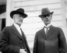 Reed Smoot (January 10, 1862 – February 9, 1941) was a businessman and apostle of The Church of Jesus Christ of Latter-day Saints (LDS Church) when he was elected by the Utah state legislature to the United States Senate in 1902; he served as a Republican senator from 1903 to 1933.[1] From his time in the Senate, Smoot is primarily remembered as the co-sponsor of the 1930 Smoot–Hawley Tariff Act, which increased almost 900 American import duties. Thomas Lamont, a partner at J.P. Morgan at the time said, "That Act intensified nationalism all over the world".[2] The Smoot-Hawley Tariff Act is widely regarded as one of the catalysts for the Great Depression.[3]