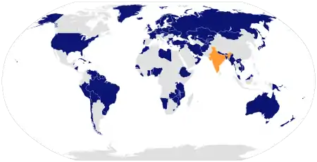 As part of the G4 nations, India is supported by Brazil, Germany, and Japan for the permanent seat. Other countries that explicitly and openly support India for UNSC permanent seat are – Afghanistan,[65] Armenia,[66] Australia,[67] The Bahamas,[68] Bahrain,[69] Bangladesh,[70] Belarus,[71] Belgium,[72] Belize,[73] Benin,[74] Bhutan,[75] Bolivia,[76] Brunei,[77] Bulgaria,[78] Cambodia,[79] Chile,[80] Comoros,[81] Croatia,[82] Cuba,[83] Cyprus,[84] Czech Republic,[85] Denmark,[68] Dominican Republic,[86] Estonia,[87] Ethiopia,[88] Fiji,[89] Finland,[90] Ghana,[91] Greece,[92] Guyana,[93] Hungary,[94] Iceland,[95] Israel,[96] Jamaica,[68] Laos,[97] Lesotho[98] Liberia,[99] Libya,[100] Lithuania,[101] Luxembourg,[102] Kazakhstan,[103] Kyrgyzstan,[68] Malawi,[104] Malaysia,[105] Maldives,[106] Malta,[107] Mauritius,[108] Micronesia,[68] Mongolia,[109] Morocco,[91] Mozambique,[110] Myanmar,[111] Namibia,[112] Nepal,[113] Netherlands,[114] New Zealand,[115] Nicaragua,[116] Nigeria,[117] Norway,[118] Oman,[119] Palau,[68] Papua New Guinea,[120] Peru,[121] Poland,[122] Portugal,[123] Rwanda,[124] Qatar,[68] Romania,[107] Serbia,[107] Senegal,[125] Seychelles,[126] Singapore,[127] Sri Lanka,[128] Slovakia,[68] Suriname,[129] Swaziland,[130] Sweden,[131] Syria,[132] Tajikistan,[133] Tanzania,[134] Trinidad and Tobago,[135] Turkey,[136] Tuvalu,[137] Ukraine,[138] United Arab Emirates,[139] Uruguay,[140] Uzbekistan,[141] Venezuela,[101] Vietnam,[142] Zambia[143] and Zimbabwe.[144] As a whole, the African Union also supports India's candidacy for permanent member of the UNSC.[145]
