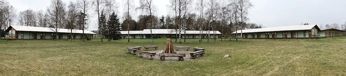 The Alfred Toepfer Akademie für Naturschutz (Alfred Toepfer Academy for Nature Conservation or NNA), now uses the camp's former officers's mess as offices and for seminars.[2][8] A new hotel was constructed, mostly from wood, with its low structures aiming to blend into the landscape whilst referencing the architecture of military camps. Two of the former tank repair shops are used as conference venues and they also host occasional cultural events (like movie screenings). The former garrison headquarters of the British is now the Gästehaus, an adjunct to the hotel offering cheap hostel-type accommodation.