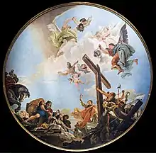 The "True Cross" refers to the actual cross used in the Crucifixion of Jesus. Today, many fragments of wood are claimed as True Cross relics, but it is hard to establish their authenticity. The story of the fourth-century discovery of the True Cross was reported in Jacopo de Voragine's The Golden Legend published in 1260, that included the lore of saints venerated at the time.[4]