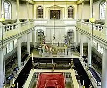 In 1915 the great-grandson of Elizabeth Schuyler Hamilton reported that his grandmother said, when she was 97 years old (about 1854), "If anyone ever tells you that George Washington was not a communicant in the Church, you say that your great-grandmother told you to say that she 'had knelt at this chancel rail at his side and received with him the Holy Communion.'"[20]