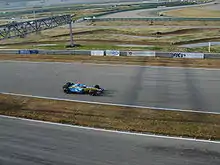 A tuned mass damper, also known as a harmonic absorber, is a device that is attached to structures in order to reduce the strength of vibrations passing through them.[4] Tuned mass dampers are used in buildings across the world to reduce the effects of earthquakes and strong gusts of wind.[5] In the Renault R26, this technology was used for a more benign purpose. It was used to keep the front of car stable over kerbs and through slow and fast corners. Keeping the front of the car stable is crucial to the aerodynamic efficiency of the car because changes in ride height - caused by bumps on the road or changes in downforce levels due to speed - can alter the way that air passes over the front wing of the car and therefore the rest of the car's aerodynamic efficiency also suffers.[6] The Tuned mass damper in the Renault R26 was invented by Renault engineer Rob Marshall. The mass damper itself was a cylinder, standing upright, with the mechanical components inside. Inside the cylinder sat a 9 kilogram disc which rested in between two springs. The disc was free to move on the Y-axis with its only hindrance, the springs that it was attached to and the damper fluid within the cylinder. The whole assembly was attached to the chassis inside the nosecone of the car. The device was then 'tuned' to the needs of each track by either changing the clearance between the disc and the cylinder bore or by adjusting the size of two-way valve within the disc itself. The Tuned mass damper on the Renault R26 vibrated in the opposite direction from the chassis due to inertia, with its magnitude calculated by the 'tuning' variables mentioned above. This counteracting force stabilized the front end of the car over kerbs and through slow and fast corners.[7]