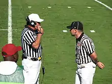 Replay reviews are utilized in some high school games, and also for many games at the college level and above. Before the 2019 season, the National Federation of State High School Associations (NFHS), which establishes the rules for most high school and youth organizations in the United States (though not for Texas high schools), did not allow replay reviews even when the equipment exists to enable the practice.[1] Effective in 2019, NFHS gave its member associations the option to allow replay review, but only in postseason games.[2] In those leagues that utilize replay reviews, there are restrictions on what types of plays can be reviewed. In general, most penalty calls or lack thereof cannot be reviewed, nor can a play that is whistled dead by the officials before the play could come to its rightful end.