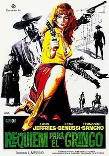 Requiem for a Gringo (Italian: Requiem per un gringo, Spanish: Réquiem para el gringo, also known as Duel in the Eclipse) is a 1968 Italian-Spanish Spaghetti Western film directed by Eugenio Martín and José Luis Merino and starring Lang Jeffries, Fernando Sancho and Femi Benussi. It is most known for the gore and psychedelic elements.[1] It is the only western film of the Eurospy and peplum film genre star Lang Jeffries.[1] The film is partially based on Masaki Kobayashi's film Harakiri.