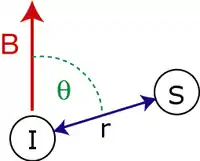 - is the angle between the inter-spin vector and the external magnetic field.