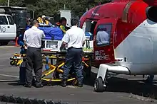 Respiratory Therapists work with nurses, physicians, and paramedics in emergency flight and ground transport.[42][43] They are a vital practitioner delivering care inside helicopters, air ambulance or ground ambulance working to pick up a patient and move them to a facility that has what they need. In the United States certification for transport (C-NPT) is currently awarded by The National Certification Corporation.[44]