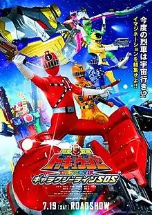 Ressha Sentai ToQger the Movie: Galaxy Line S.O.S. (烈車戦隊トッキュウジャー THE MOVIE ギャラクシーラインSOS, Ressha Sentai Tokkyūjā THE MOVIE Gyarakushī Rain SOS) is a Japanese film serving as the theatrical adaptation of the 2014 Super Sentai television series Ressha Sentai ToQger. It was released on July 19, 2014, as a double-billing with Kamen Rider Gaim: Great Soccer Battle! Golden Fruits Cup!.[1][2] It features the ToQgers helping out Lady, conductor of the Galaxy Line, after she is attacked by Count Nair of the Shadow Line, portrayed by musician Hyadain. Hyadain said that as a child he enjoyed Dengeki Sentai Changeman, Choushinsei Flashman, and Hikari Sentai Maskman and hoped that he would portray the character well.[3]