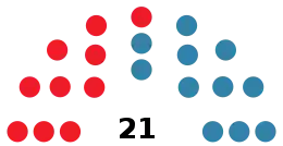 | Parties and coalitions | Popular vote | Councillors | ||||