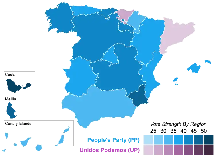 This is the results breakdown of the Congress of Deputies election held in Spain on 26 June 2016. The following tables show detailed results in each of the country's 17 autonomous communities and in the autonomous cities of Ceuta and Melilla, as well as a summary of constituency results.[1][2]