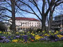 After the citizens of Reutlingen had actively participated in the Revolution of 1848-49, the Württemberg government deliberately delayed the construction of the railway from Plochingen to Reutlingen.[4] The station was finally opened on 20 September 1859. It had an administration building and a customs house, a freight shed, a locomotive depot and a repair workshop with a water supply point.[5]