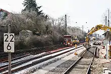 This required considerable modernisation and electrification between Graben-Neudorf and Germersheim. In addition, the three new stops of Germersheim Mitte/Rhein, Bruchsal Am Mantel and Bruchsal Sportzentrum were built. The upgrade of the line began in early July 2010 and lasted 17 months. The cost of the infrastructure work amounted to approximately €31.7 m.[11][12] All stations were adapted for the disabled and made barrier-free. The only exception was the halt of Bruchsal Am Mantel, which had no ramps and lifts for part of 2012.