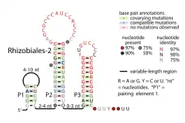 ![]() Consensus secondary structure of Rhizobiales-2 RNAs | |