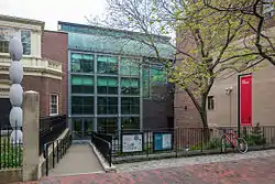 In September 2008, a new addition to the RISD Museum was opened to the public. Designed by Pritzker Prize-winning architect Jose Rafael Moneo of Spain, the Chace Center connects the four old buildings of the RISD Museum with a glass bridge.[3] The $34 million center was built on a parking lot, and named in honor of the late Malcolm and Beatrice “Happy” Oenslager Chace. The Chace Center serves as the main entrance to the museum and includes an auditorium, a retail shop, and exhibition and classroom spaces.[4]