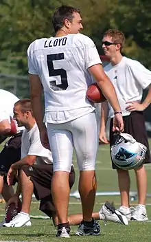 Lloyd was claimed off waivers by the Carolina Panthers on December 26, 2007. He signed a multi-year contract with the team in 2008. The Panthers used Lloyd as a kickoff specialist, with veteran placekicker John Kasay handling the field goal duties. Lloyd led the NFL in 2008 in touchbacks on kickoffs with 30 on the season. Lloyd signed with the Minnesota Vikings on March 8, 2010. This deal put him back near his alma mater Eastview High School in Apple Valley, Minnesota. He was released by the Vikings on September 4, 2010.